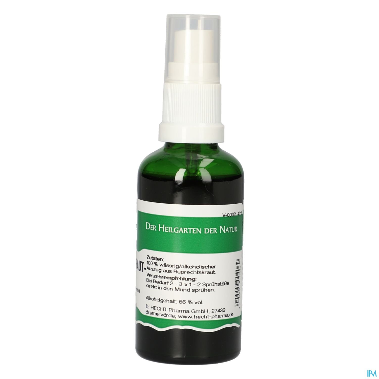 zusammensetzung:ruprechtskrautspray Enthält Einen Hochwertigen wässrig/alkoholischen Auszug aus Ruprechtskraut. Der Auszug Wird nach Vorgaben Des Arzneibuches im Verhältnis 1:5 Hergestellt. alkoholgehalt: 66 % Vol.