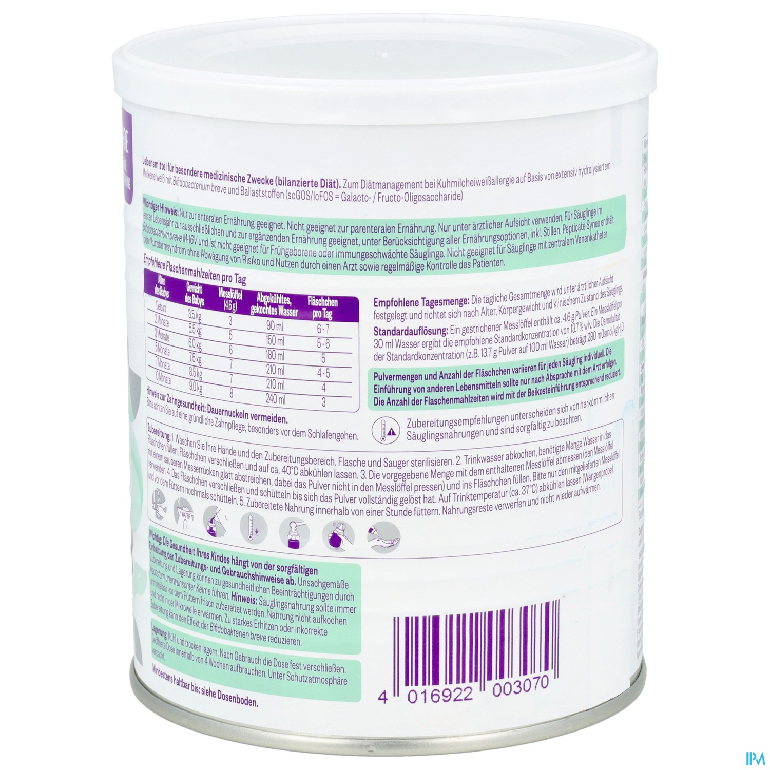 Geeignet als alleinige Nahrungsquelle für Säuglinge bis zu 6 Monaten und/oder als Bestandteil einer ausgewogenen Ernährung ab 6 Monaten. Pepticate Syneo® enthält Bifidobacterium breve M-16V und ist nicht für Frühgeborene oder immungeschwächte Säuglinge geeignet.