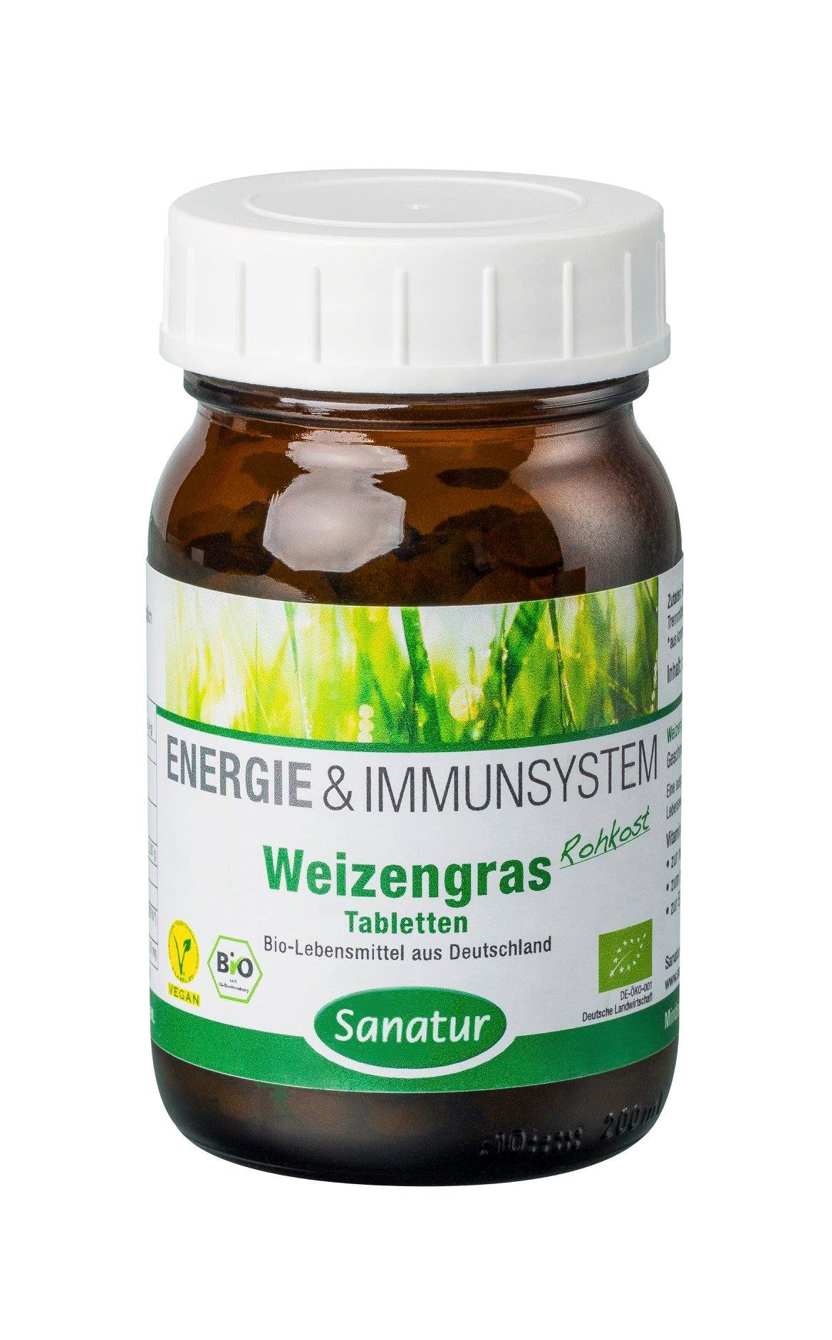 "Das Besondere an Sanatur Weizengras: naturreine Rohkost-Bioqualität nach biologischen Richtlinien in Deutschland angebaut zum Zeitpunkt der höchsten Nährstoffdichte geerntet sorgsam verlesen und bei Raumtemperatur getrocknet extra fein vermahlen, als Pulver oder Tabletten erhältlich Sanatur Weizengras ist glutenfrei, denn die Ernte findet vor dem Stadium der Kornbildung statt."