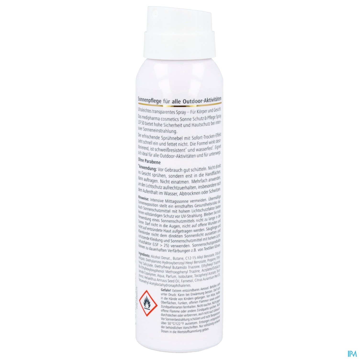*Vor Gebrauch gut schütteln. Nicht direkt ins Gesicht sprühen, sondern erst in die Handfl ächen, dann auftragen. Nicht einatmen. Mehrfach anwenden, um den Lichtschutz aufrecht zuerhalten, insbesondere nach dem Aufenthalt im Wasser, Abtrocknen oder Schwitzen.