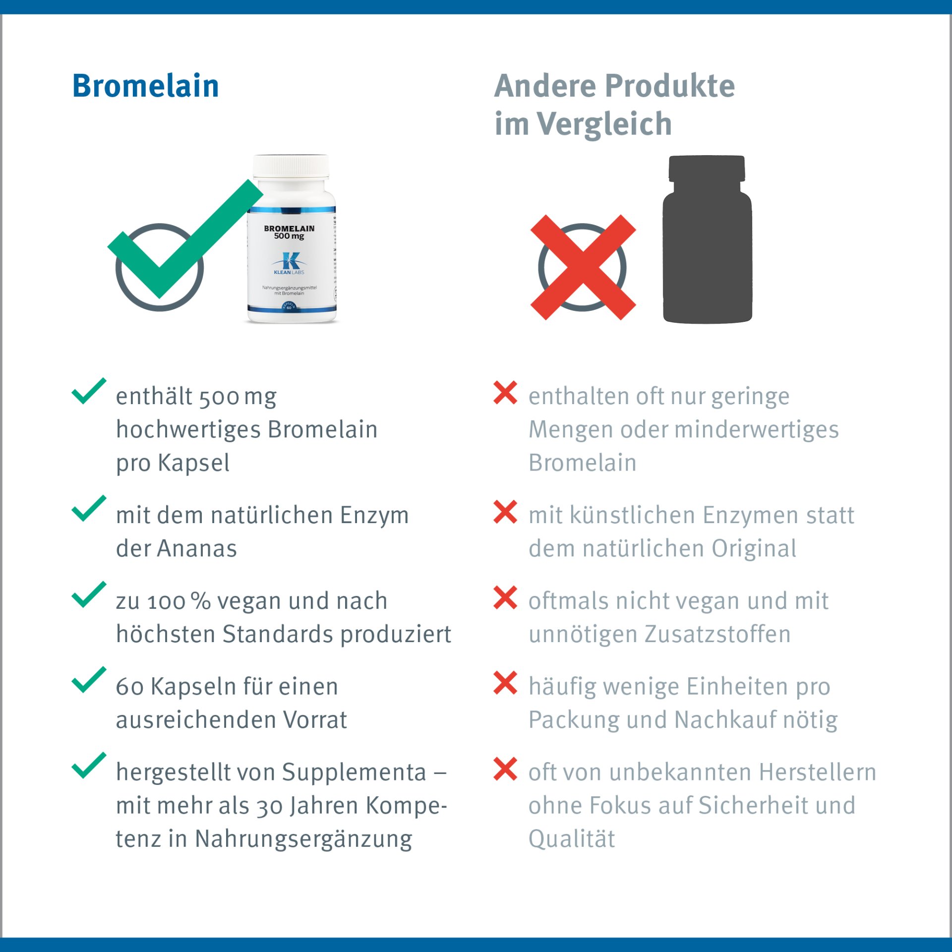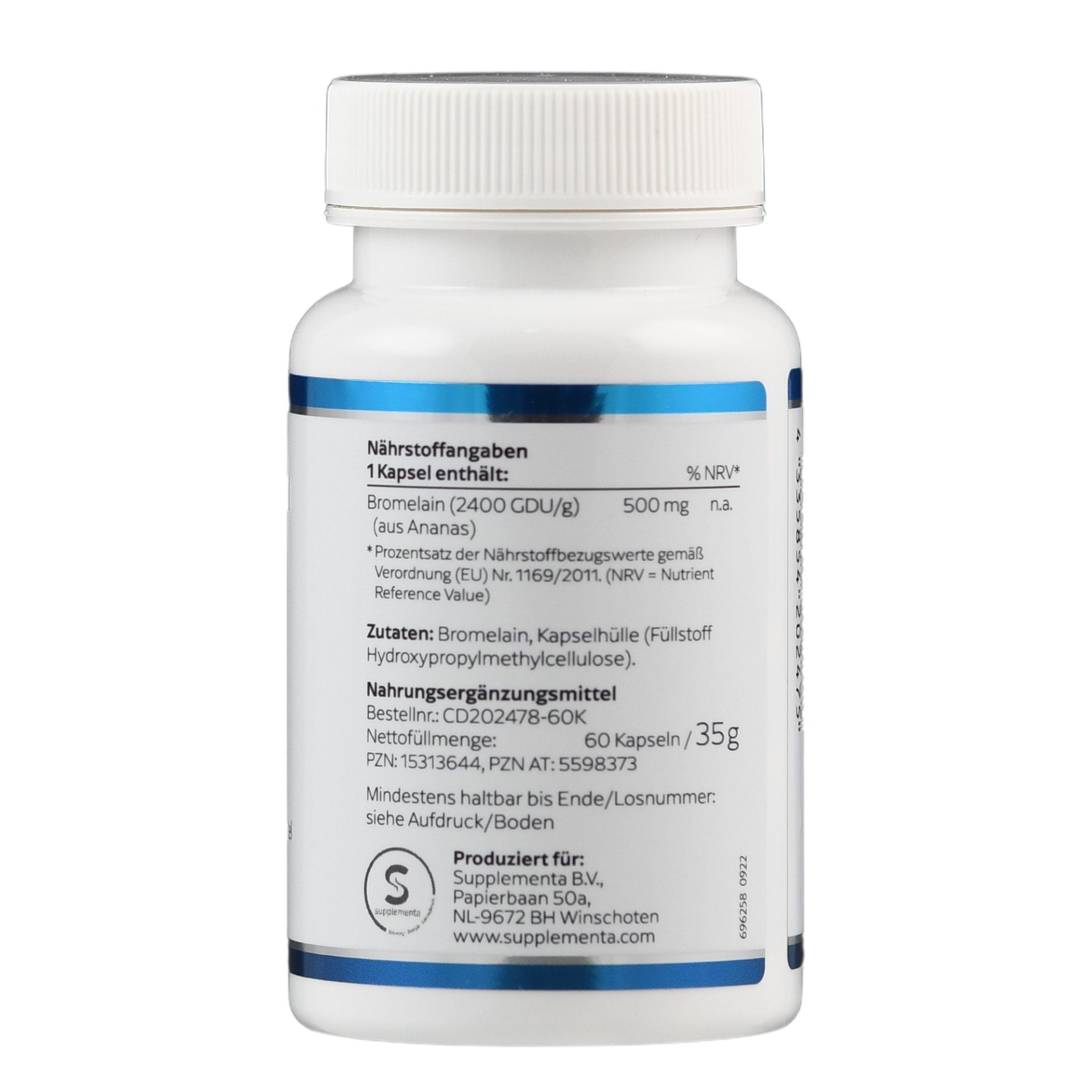 Nahrungsergänzungsmittel mit 500 mg Bromelain pro Kapsel.