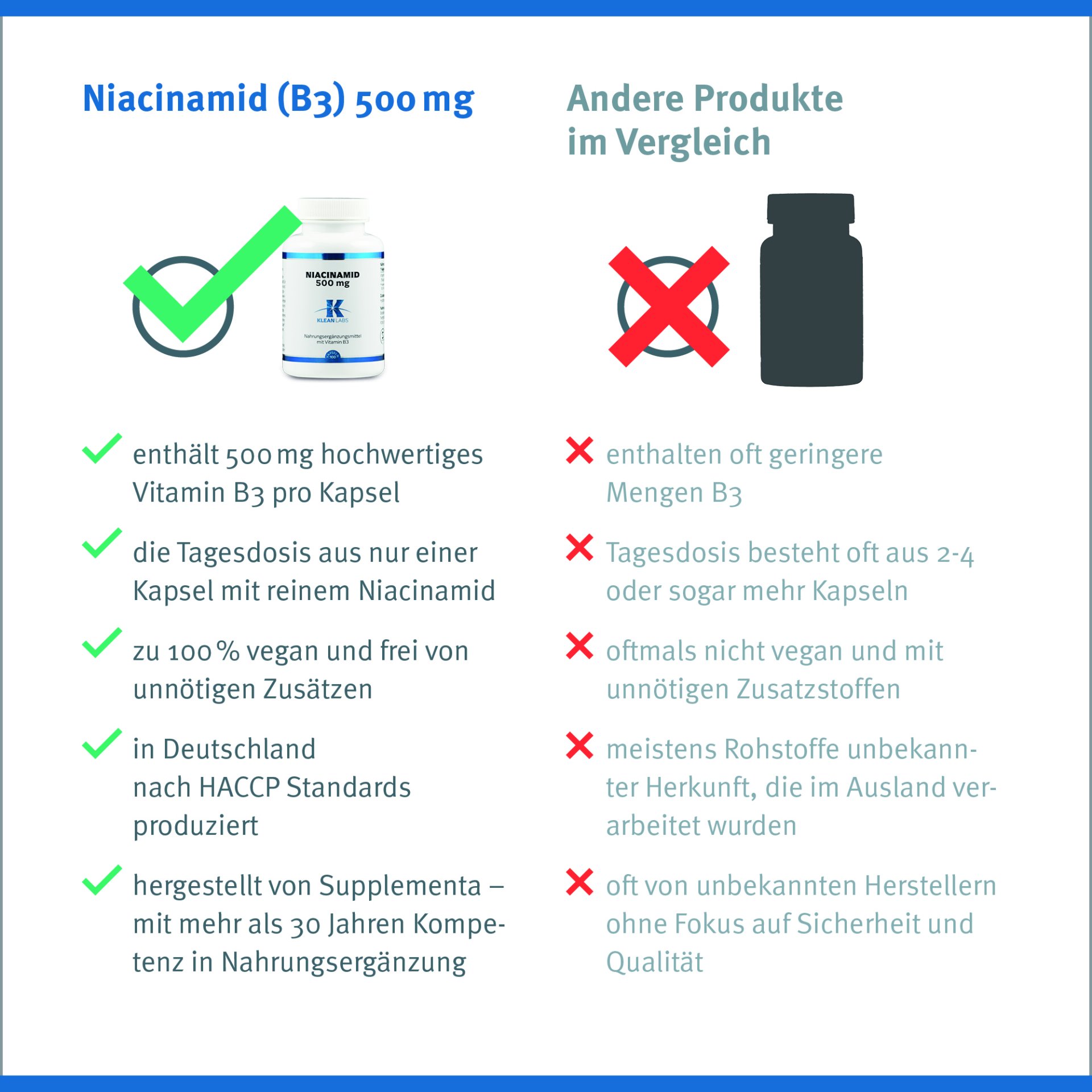 Nahrungsergänzungsmittel mit 500 mg Vitamin B3 (Niacinamid) pro