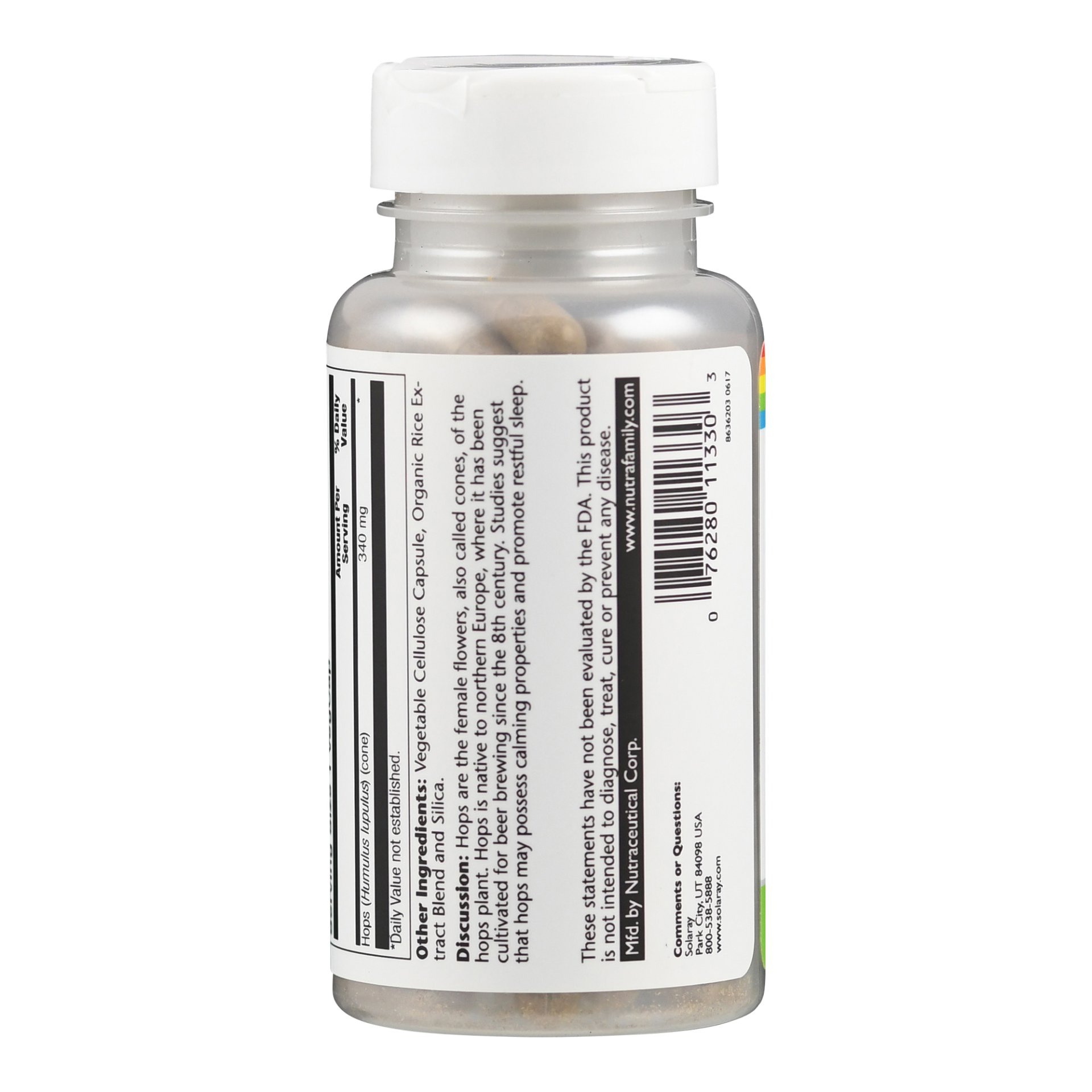 Nahrungsergänzungsmittel mit 340 mg Hopfen pro Kapsel. Die Packung enthält 100 Kapseln. Zudem ist das Produkt vegan.