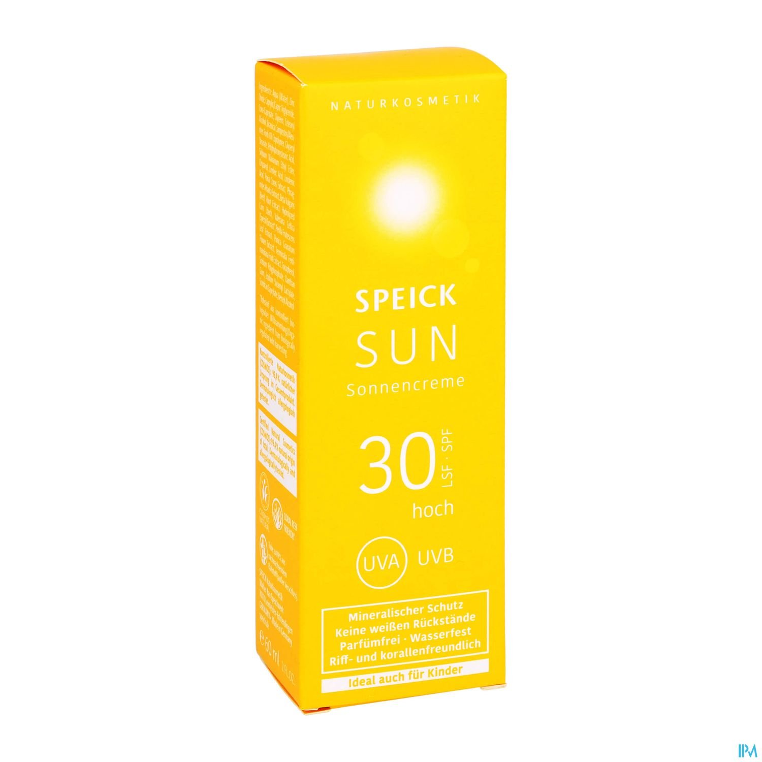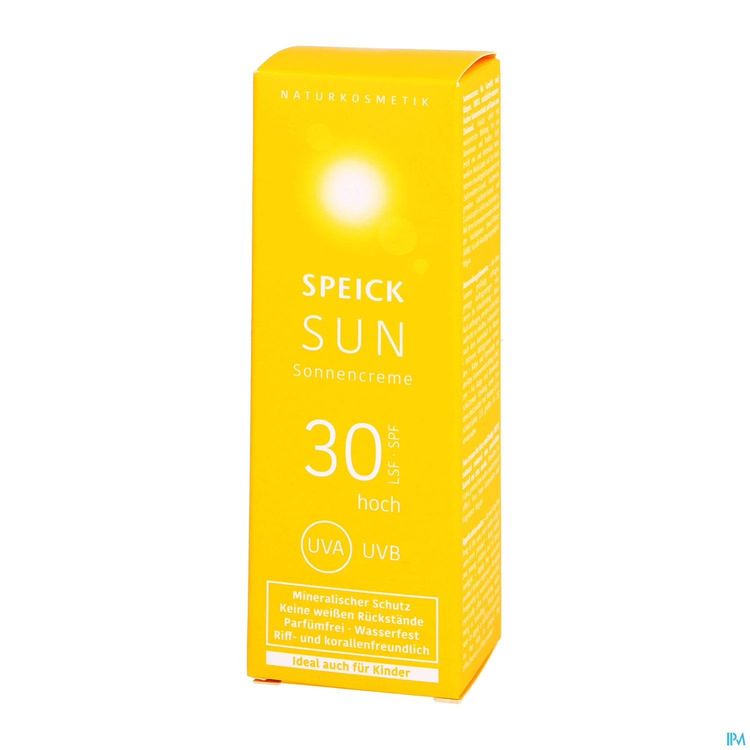Die SPEICK Sun Sonnencreme LSF 30 ist ein zu 100% natürlich-mineralischer Sonnenschutz auf Basis von Zinkoxid. Sie ist frei von Aluminium und Parfüm und bietet einen zuverlässigen Sofortschutz vor UVA- und UVB-Strahlung mit wasserfester Wirkung. Die Naturkosmetik Sonnencreme von SPEICK mit Lichtschutzfaktor 30 zieht leicht ein und hinterlässt keine weißen Rückstände auf der Haut. Dank des intensiven, hohen Sonnenschutz ist sie besonders für helle Hauttypen und Kinder geeignet. Bei intensiver Sonneneinstrahlung und UV-Belastung anwenden. Schützt empfindliche Gesichtshaut.