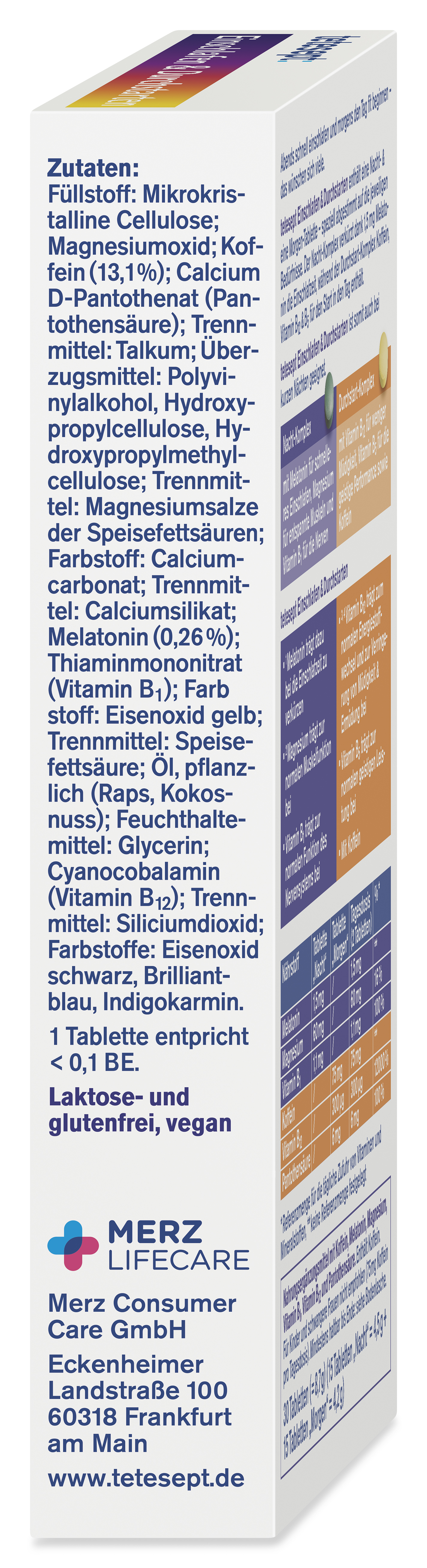 1 Tablette morgens: 75mg Koffein, 300µg Vitamin B12