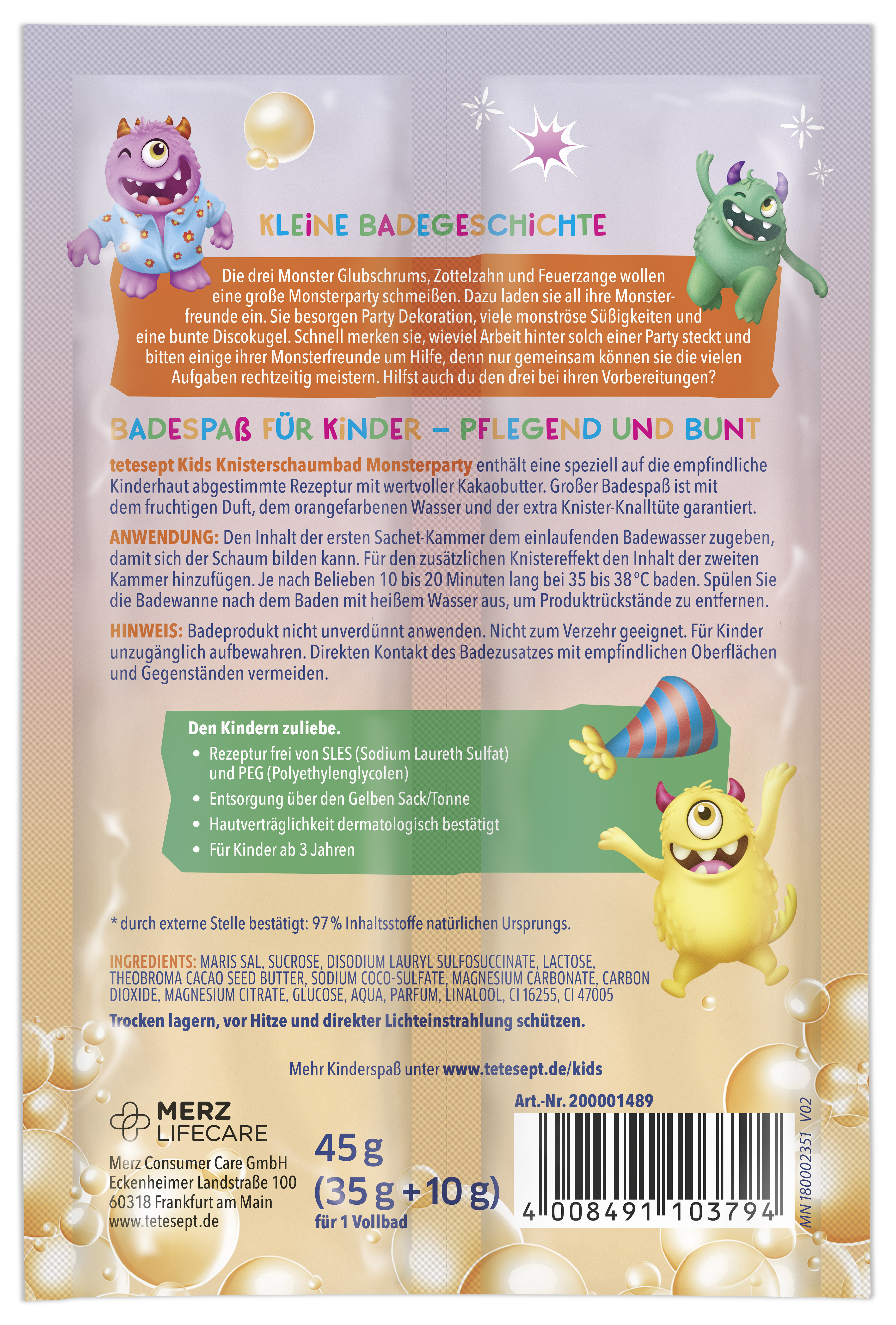 Monsterparty enthält eine speziell auf die empfindliche Kinderhaut