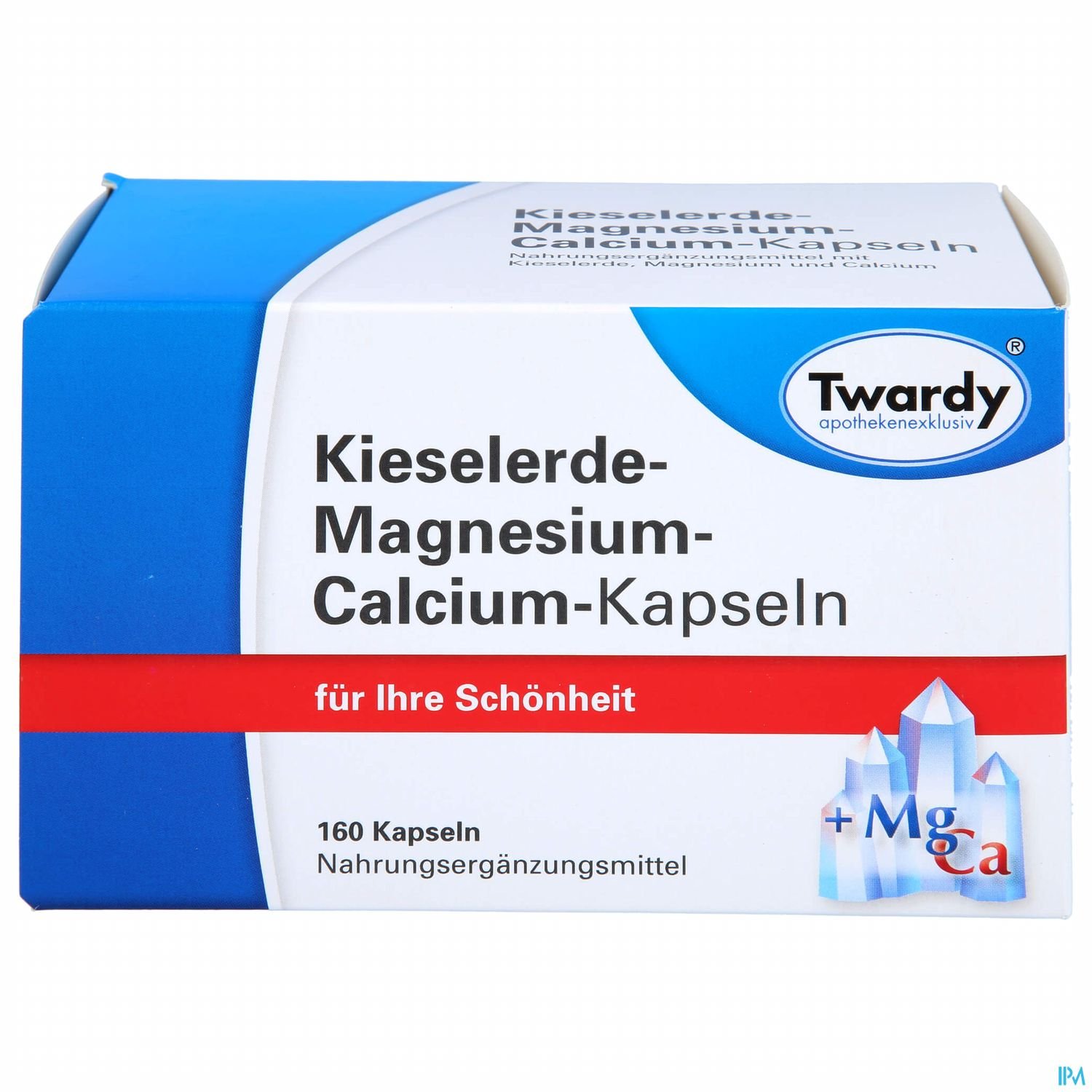 Zutaten:Kieselerde (35 %), Calcium-Zubereitung [Calciumcarbonat (93 %), Maltodextrin] (26 %), Gelatine, Magnesiumcarbonat (16 %), Trennmittel: Magnesiumsalze der Speisefettsäuren Farbstoff: Titandioxid.