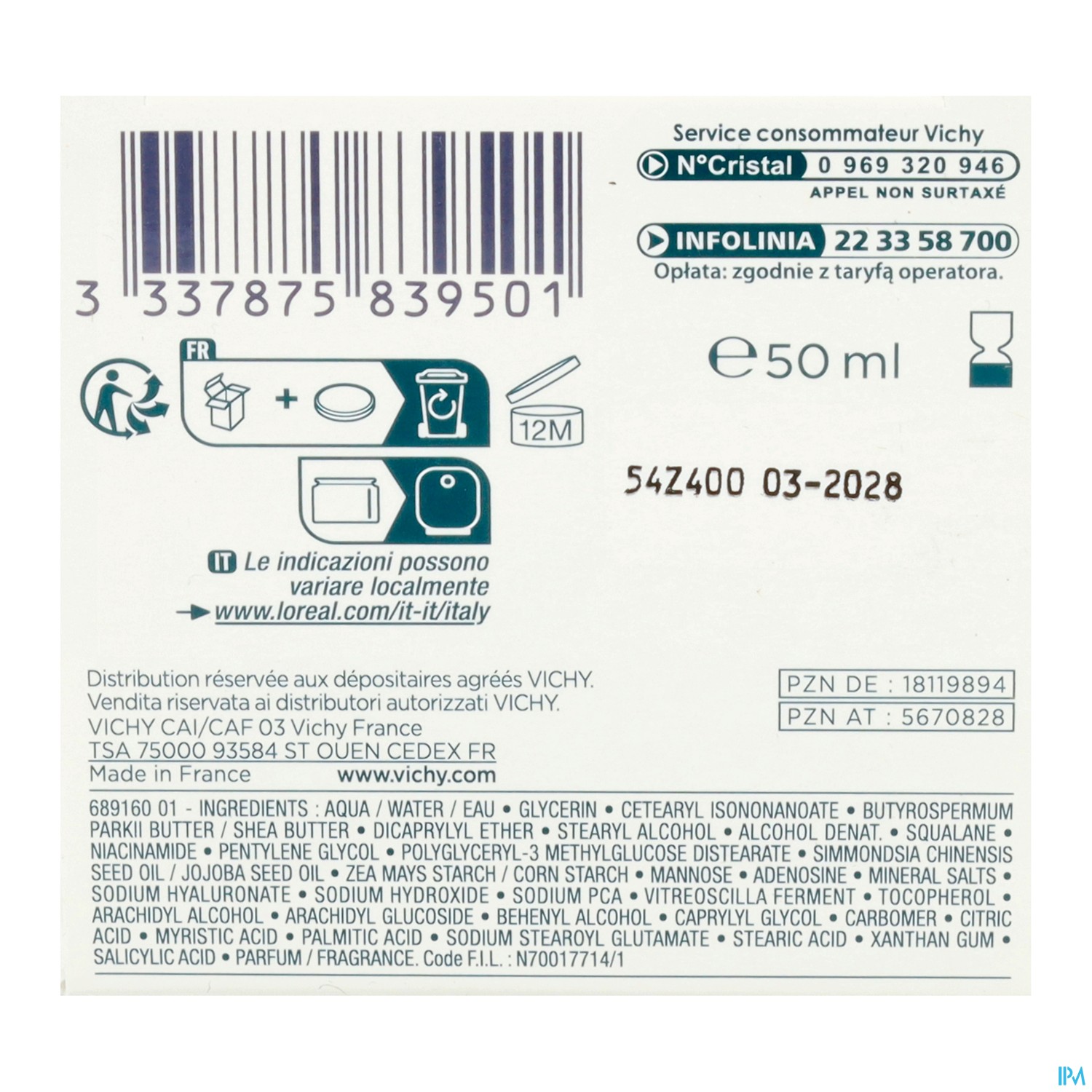 Vichy Mineral 89 Creme mit Duftstoffe 50mlPreis € 28,50 -
