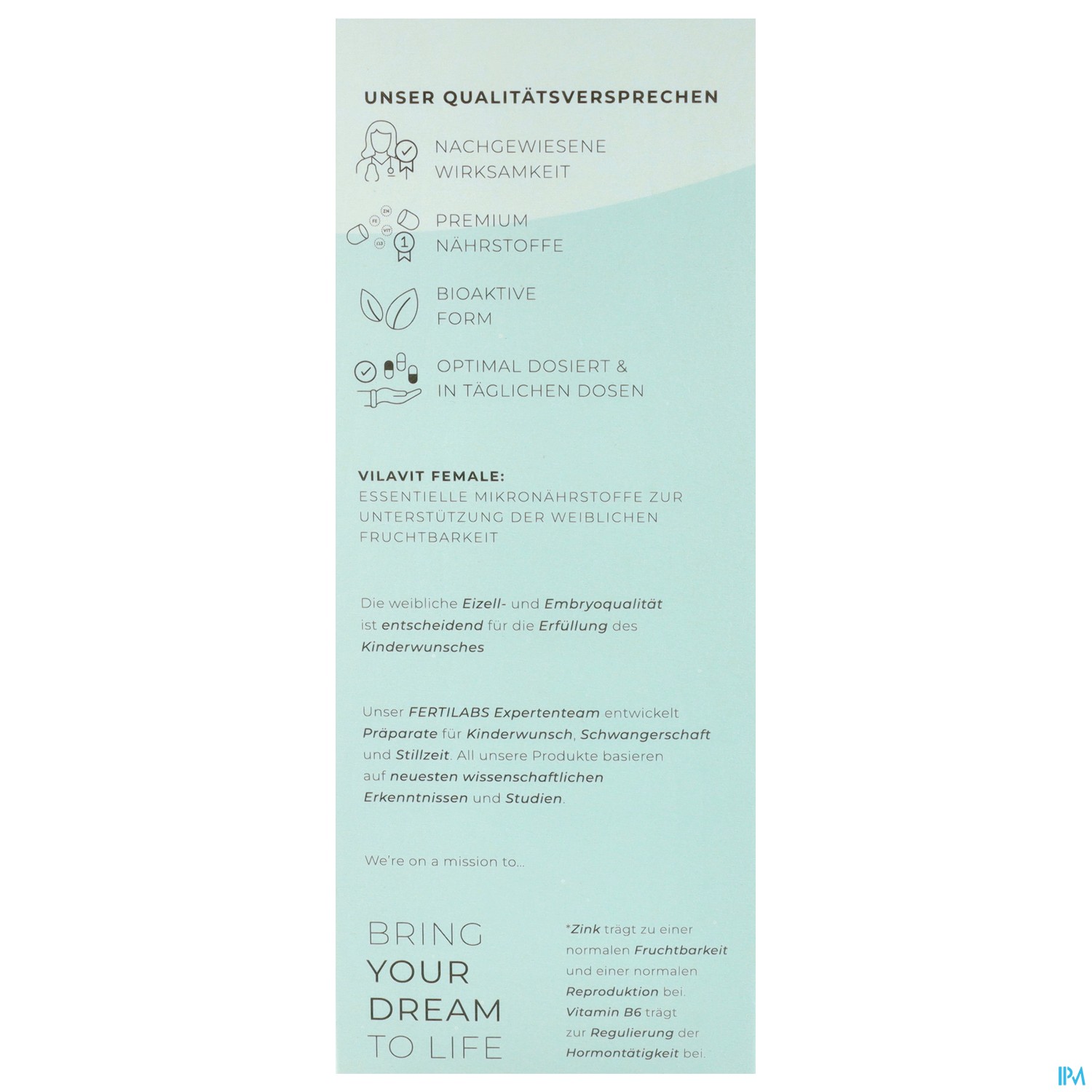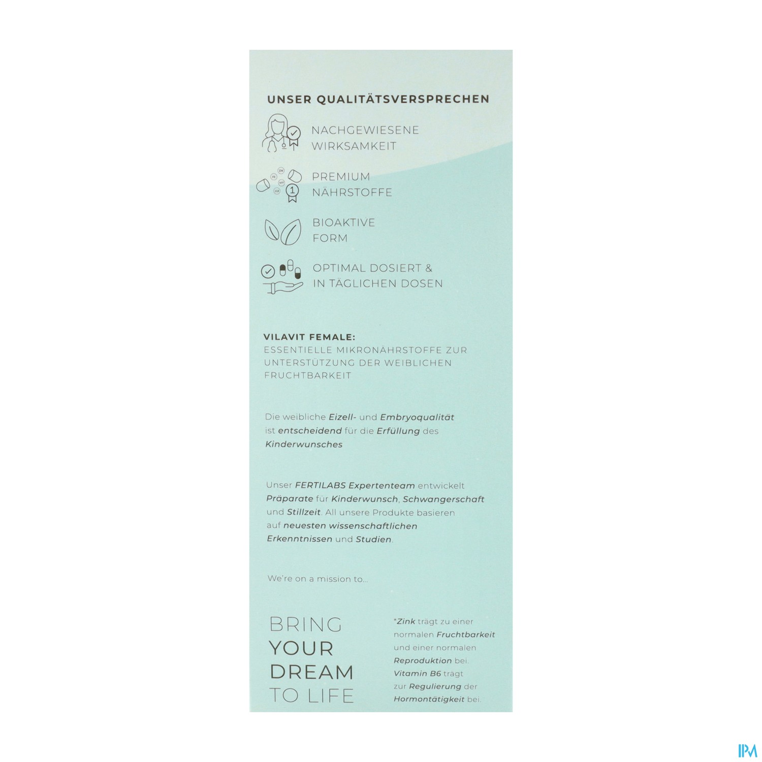 Alle relevanten Mikronährstoffe zur Unterstützung der Eizellqualität & Embryoqualität. Für die weibliche Fruchtbarkeit.