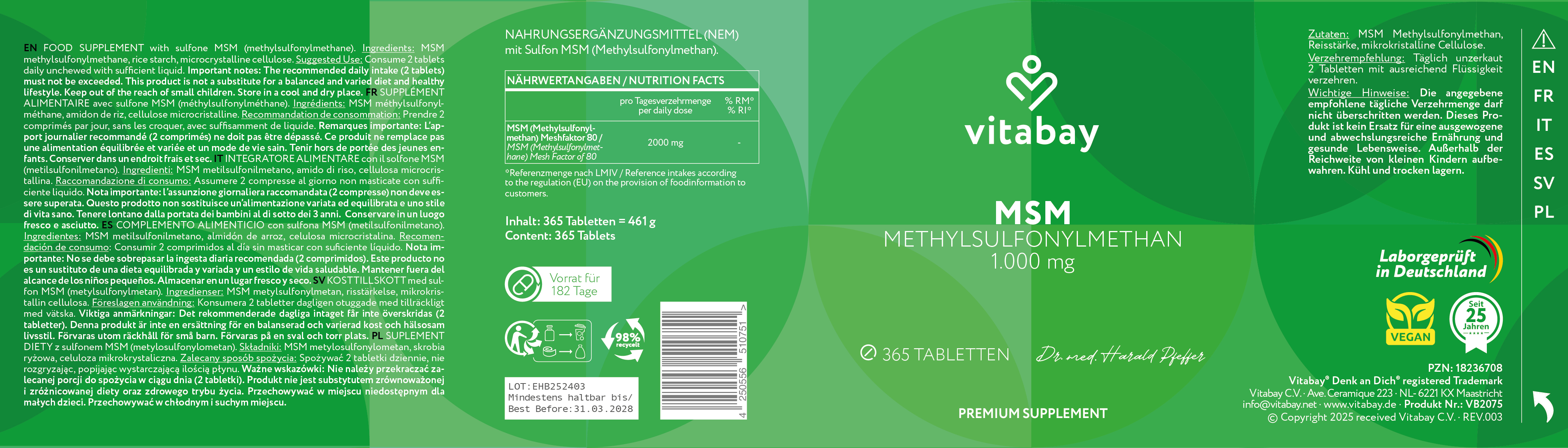 Vitabay Msm - Methylsulfonylmethan 1.000 mg (365 Stk.)