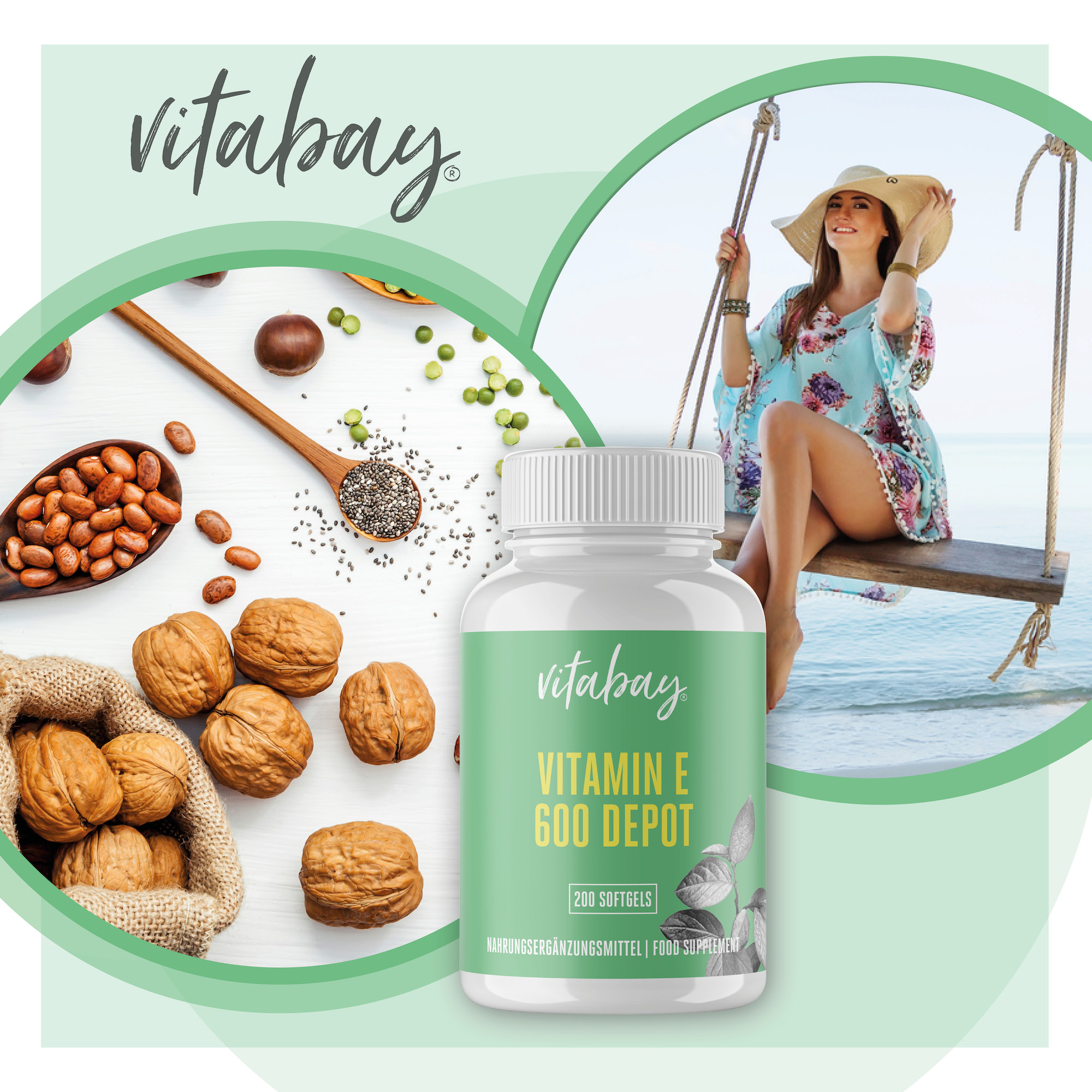Vitamin E 600 IE von Vitabay ist ein Nahrungsergänzungsmittel mit