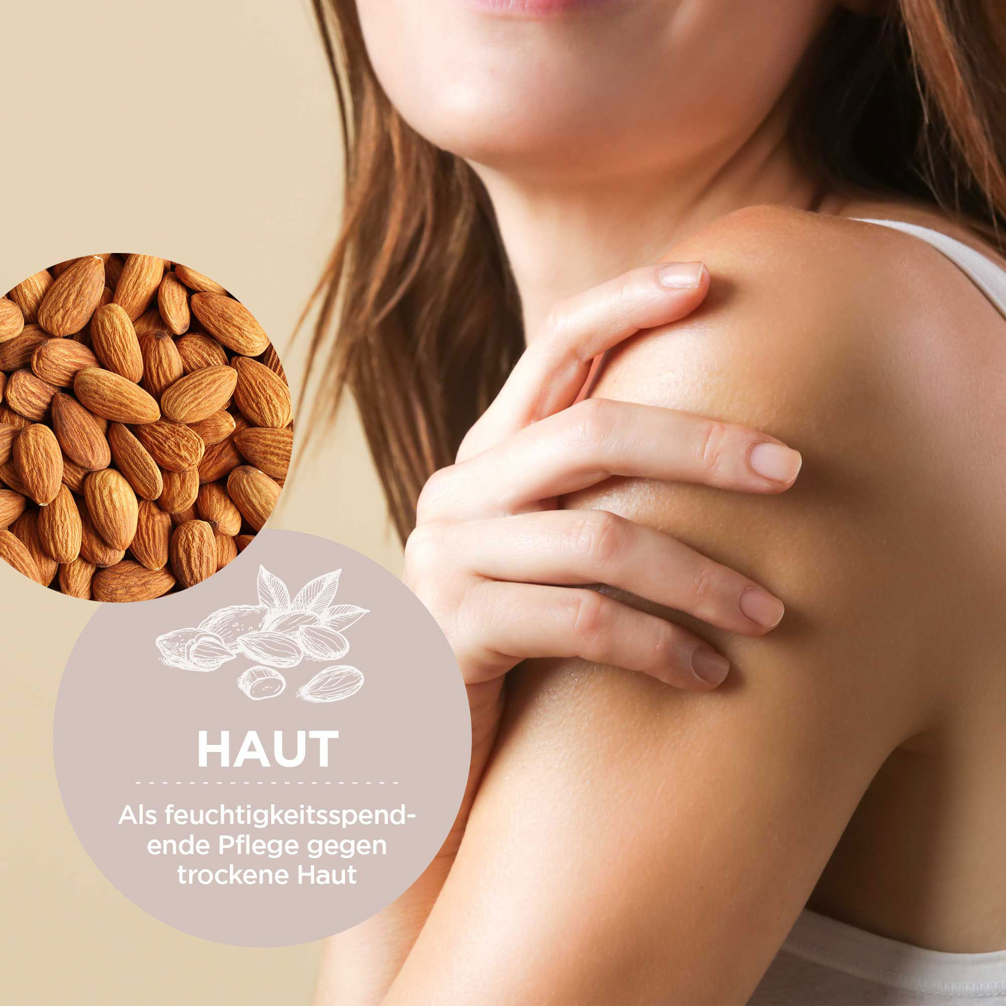 Ob zur Pflege oder als Massageöl: Unser Mandelöl Bio ist reich an wertvollen Inhaltsstoffen und vielseitig anwendbar. Als sehr ergiebiges Öl eignet es sich zur sanften Pflege des gesamten Körpers und spendet Haut, Haaren oder Nägeln die benötigte Feuchtigkeit. Dank des hohen Gehalts an Vitamin E wirkt das Mandelöl antioxidativ und unterstützt die natürliche Schutzbarriere. Die angenehme Textur des kaltgepressten Mandelöls zieht leicht und ohne Rückstände tief in deine Haut und Haare ein und entfaltet ihre Pflege von innen heraus. Es ist sehr gut geeignet als Baby Mandelöl, als Mandelöl für Haare sowie Mandelöl für das Gesicht.