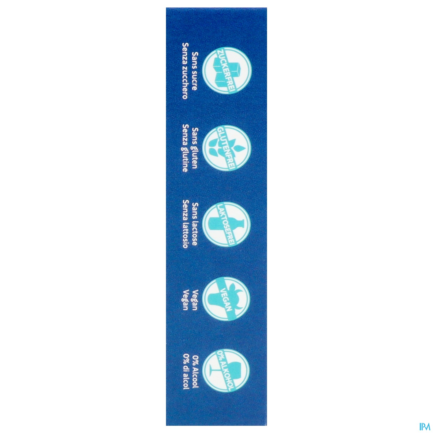 Aktive Inhaltsstoffe:Xylit, Akaziengummi, Cellulosegummi, Dextrin, natürliche und künstliche Aromen, Magnesiumstearat, Natriumhydrogencarbonat, Calciumcarbonat
