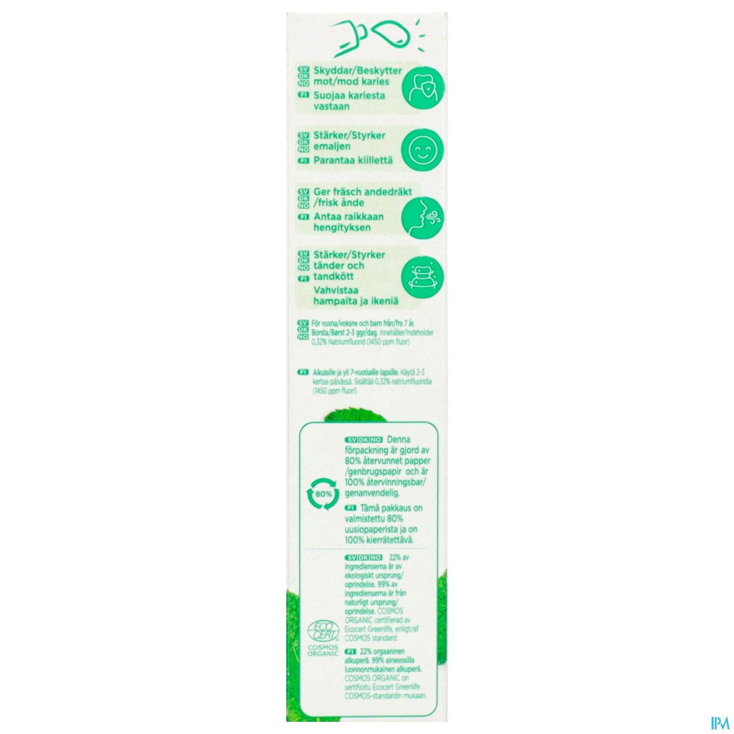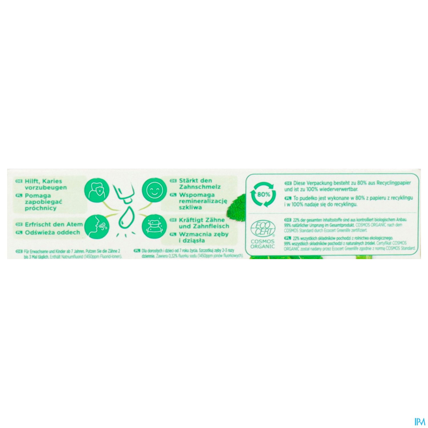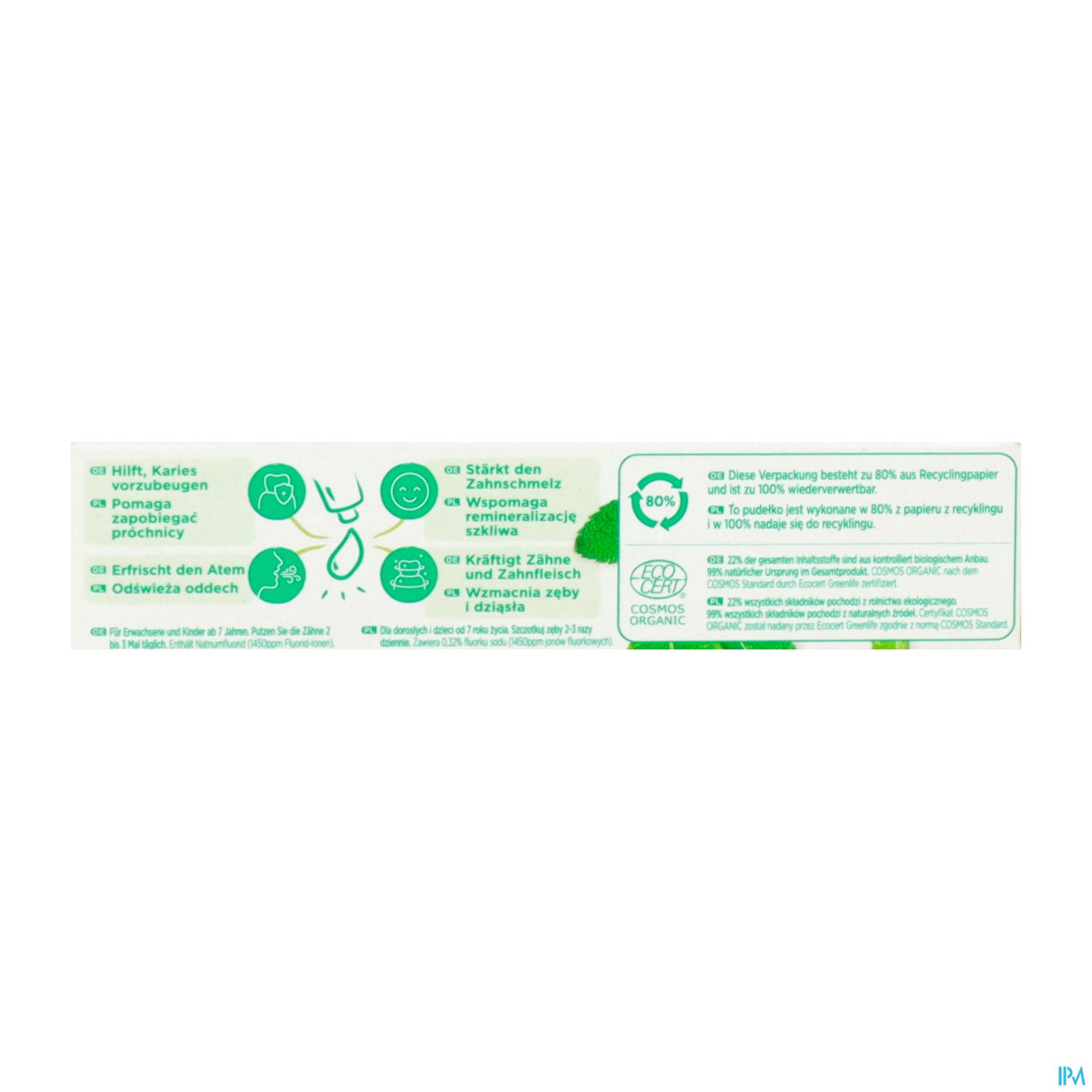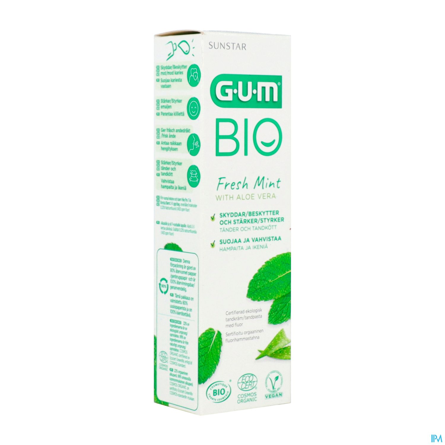 Mit 99% natürlichen Inhaltsstoffen und 22% aus kontrolliert biologischem Anbau, ist die GUM BIO Zahnpasta besonders schonend für Zahnfleisch und Zähne. Die Formulierung beinhaltet Fluorid (gemäß den Empfehlungen von Zahnärzten und der Europäischen Föderation für Parodontologie), um den Zahnschmelz zu stärken und vor Karies zu schützen. Die Wirksamkeit unserer Zahnpasta wurde getestet und erfüllt die gleichen Kriterien wie andere GUM Zahnpasten.